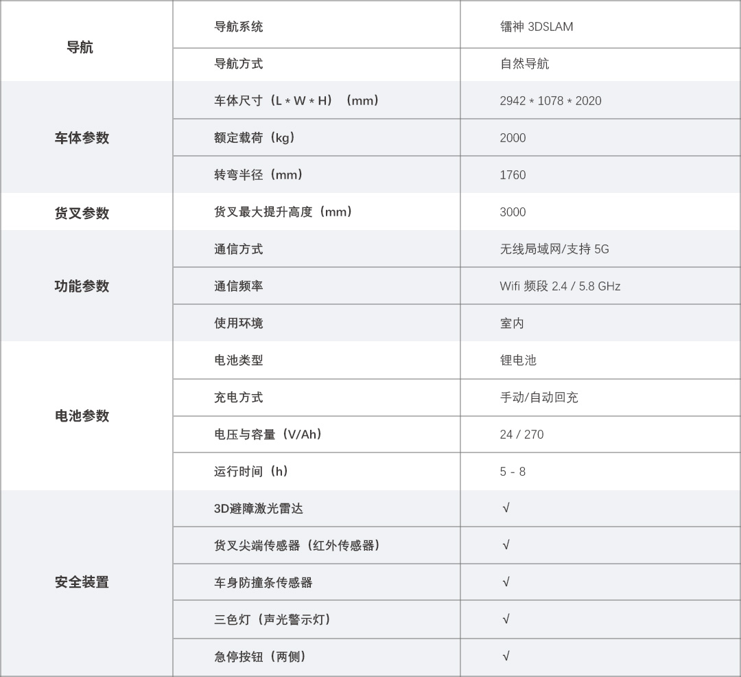 LXP20-B是一款采用多线激光雷达3DSLAM技术的自然导航室内平衡重式无人叉车,可以满足堆高作业需求,又兼具有运行速度快、爬坡能力好,载重极限高的优势,同时适用于田字托、川字托等托盘货物在不同货位间的自动化中转搬运。适用于无人装卸车、地面货物堆叠、穿梭式货架对接、地面水平搬运、重载堆高等应用场景。